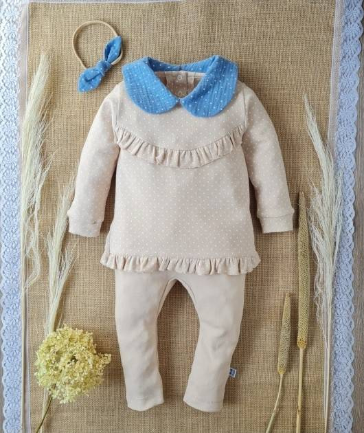 Zapytaj o produktLegginsy uszyte z bawełny. Model wygodny i przyjemny w noszeniu, pasują do każdego rodzaju body, bluzeczki czy tuniki. Szeroki klin w kroczku zapewnia swobodę ruchów i pozostawia miejsce na pieluszkę. Polecamy w zestawie z body oraz opaską z kolekcji Sophie.