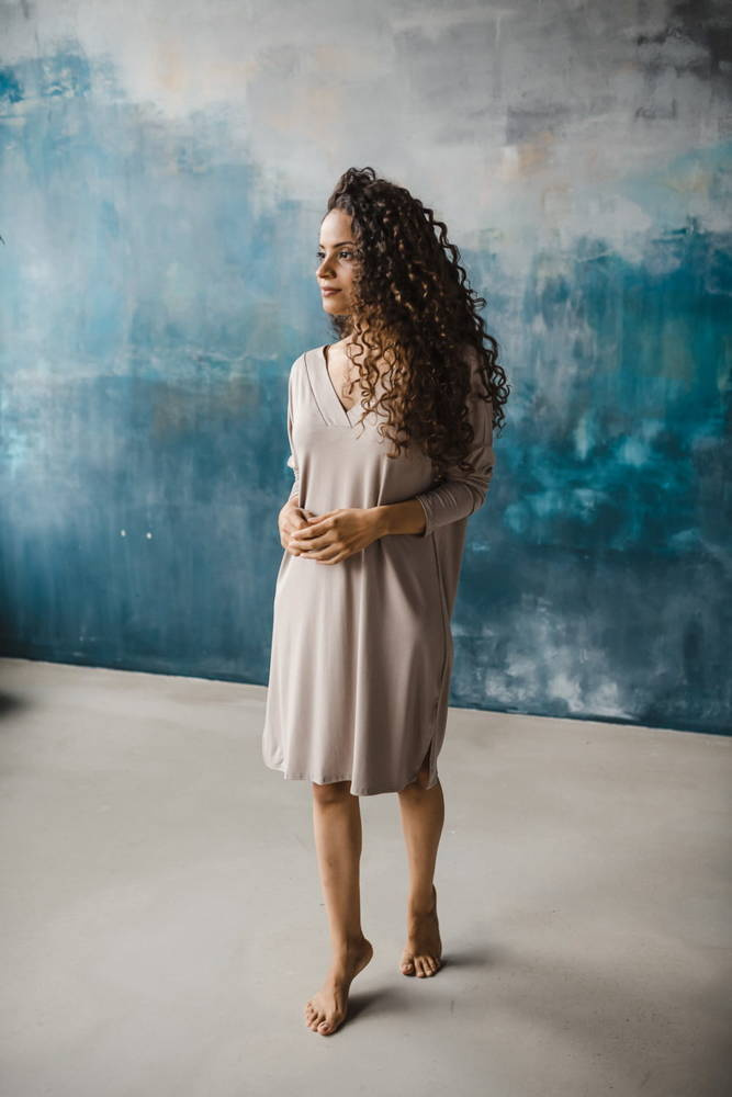 Moon bambusowa koszula nocna ciążowa i do karmienia długi rękaw Milk&Love beż