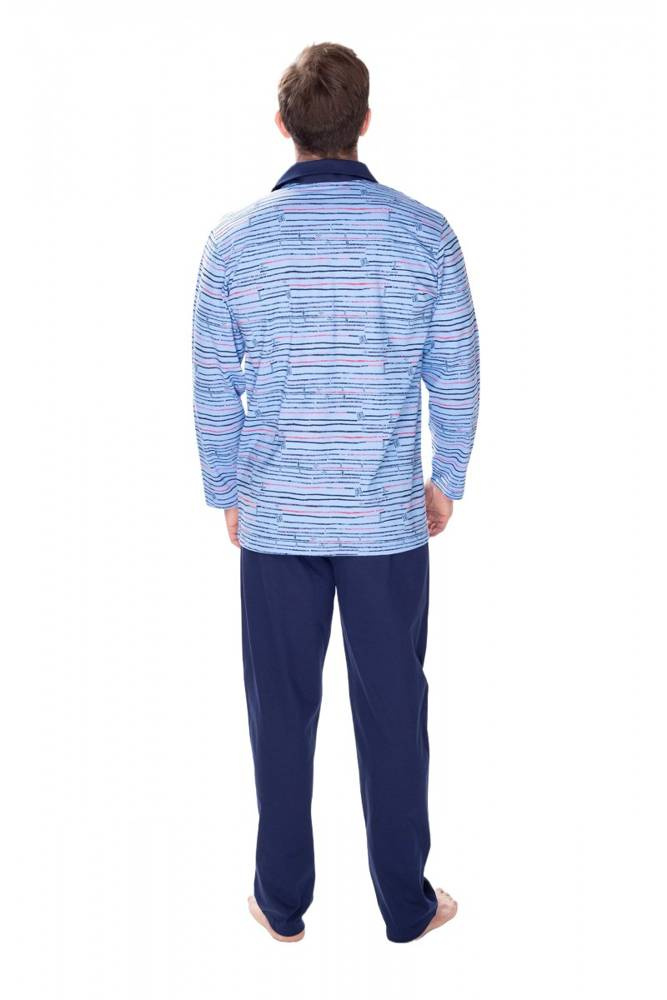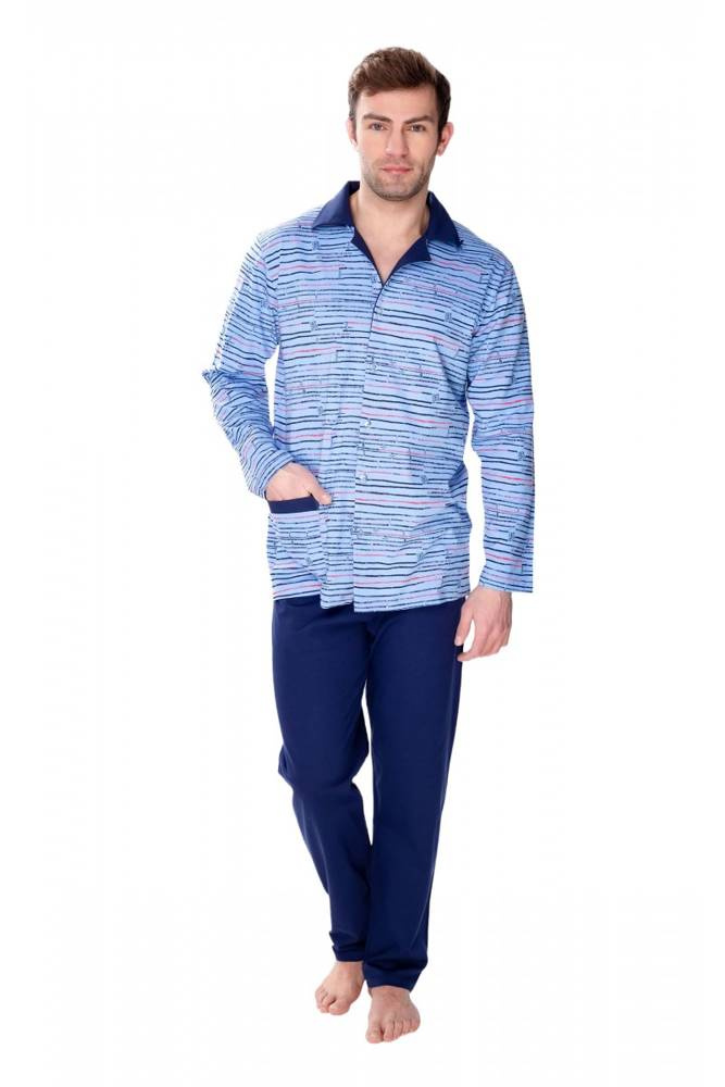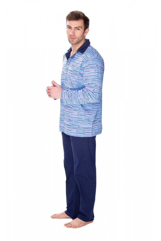 Piżama posiada koszulkę z długim rękawem oraz długie spodnie. Piżama przeznaczona jest dla mężczyzn w każdym wieku, sprawdzi się do użytku w domu, w szpitalu czy podczas wyjazdu.