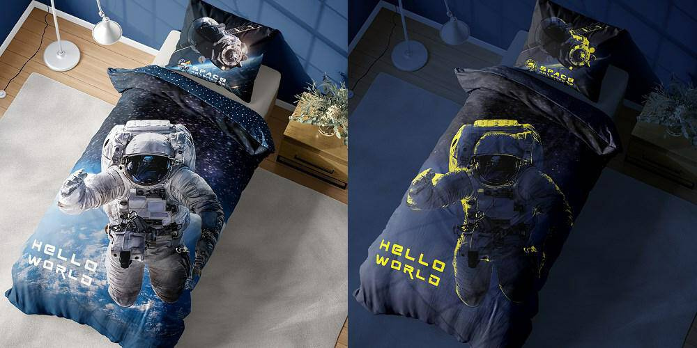 4025 A Fluo 133 Pościel bawełniana świecąca w ciemności kosmonauta Detexpol