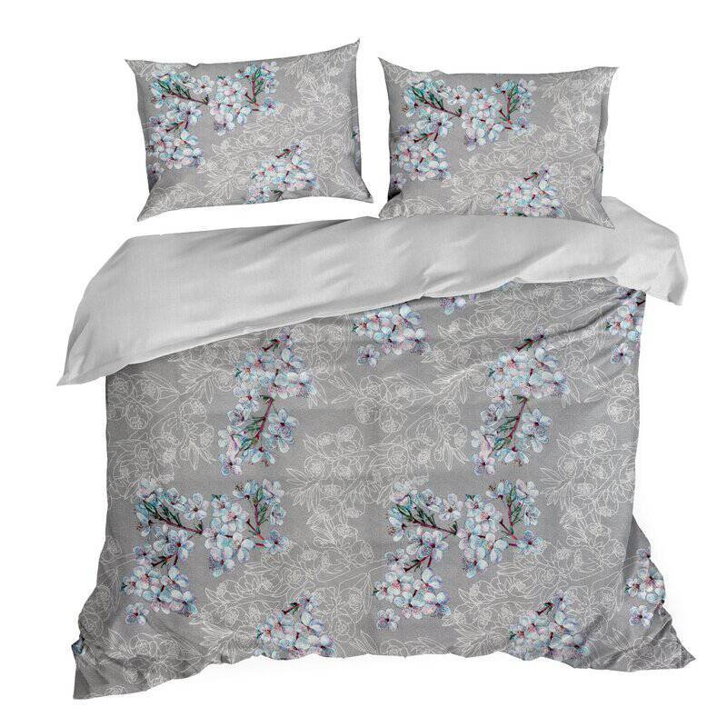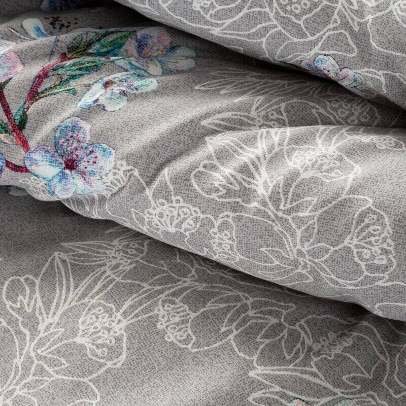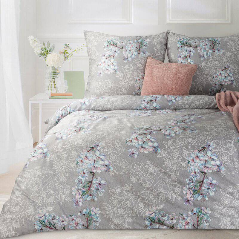 Nelly 5 pościel satynowa kwiaty Eurofirany szary-niebieski