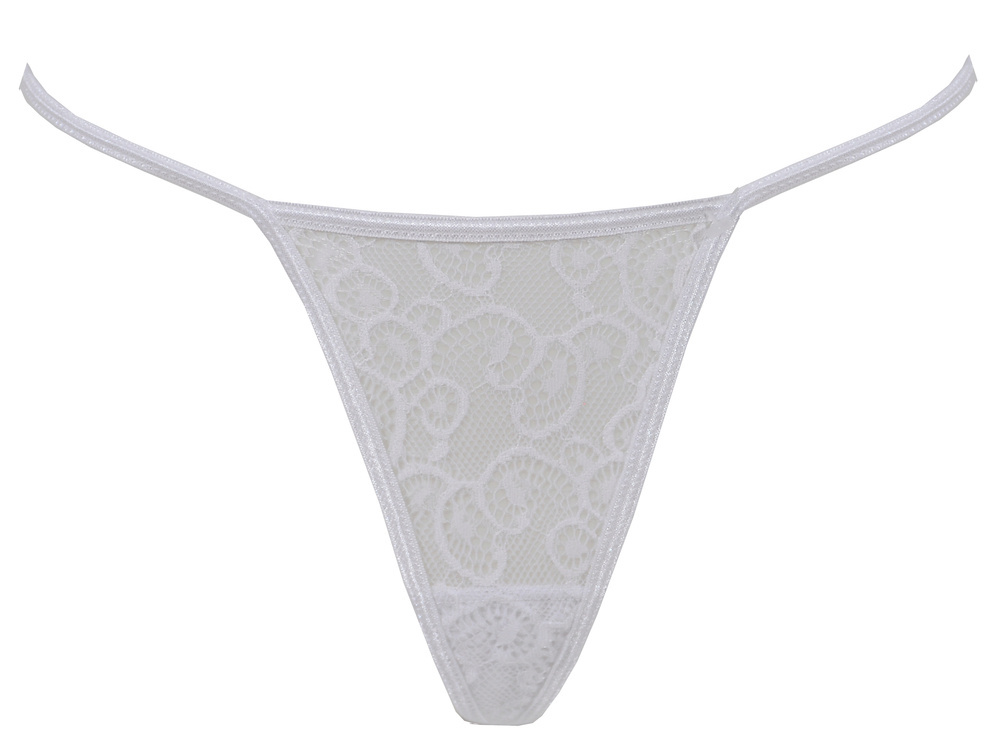 Stringi na cienkich paseczkach wykonane ze zmysłowej, prześwitującej koronki.