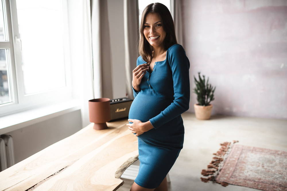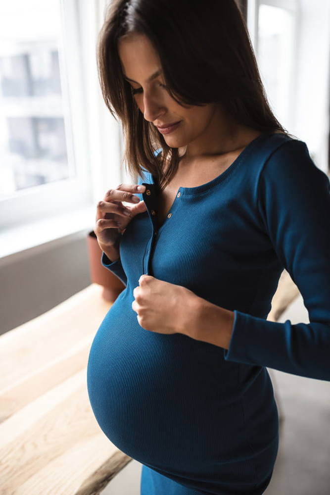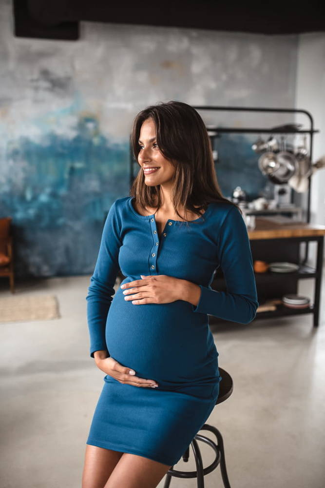 Wygodna sukienka ciążowa uszyta z wysokiej jakości dzianiny, która się nie odkształca! Ma dopasowany krój, a dzięki napom przy dekolcie swobodnie nakarmisz w niej maluszka. Można ją nosić także po ciąży, jako zwykłą sukienkę typu bodycon! Idealna na co dzień i na specjalne okazje Została uszyta z miękkiej dzianiny, która przeszła rygorystyczne testy Oeko-Tex Standard 100. Bawełniana dzianina zachowuje gładkość i głęboki kolor nawet po wielu praniach. Uszyta w Polsce!