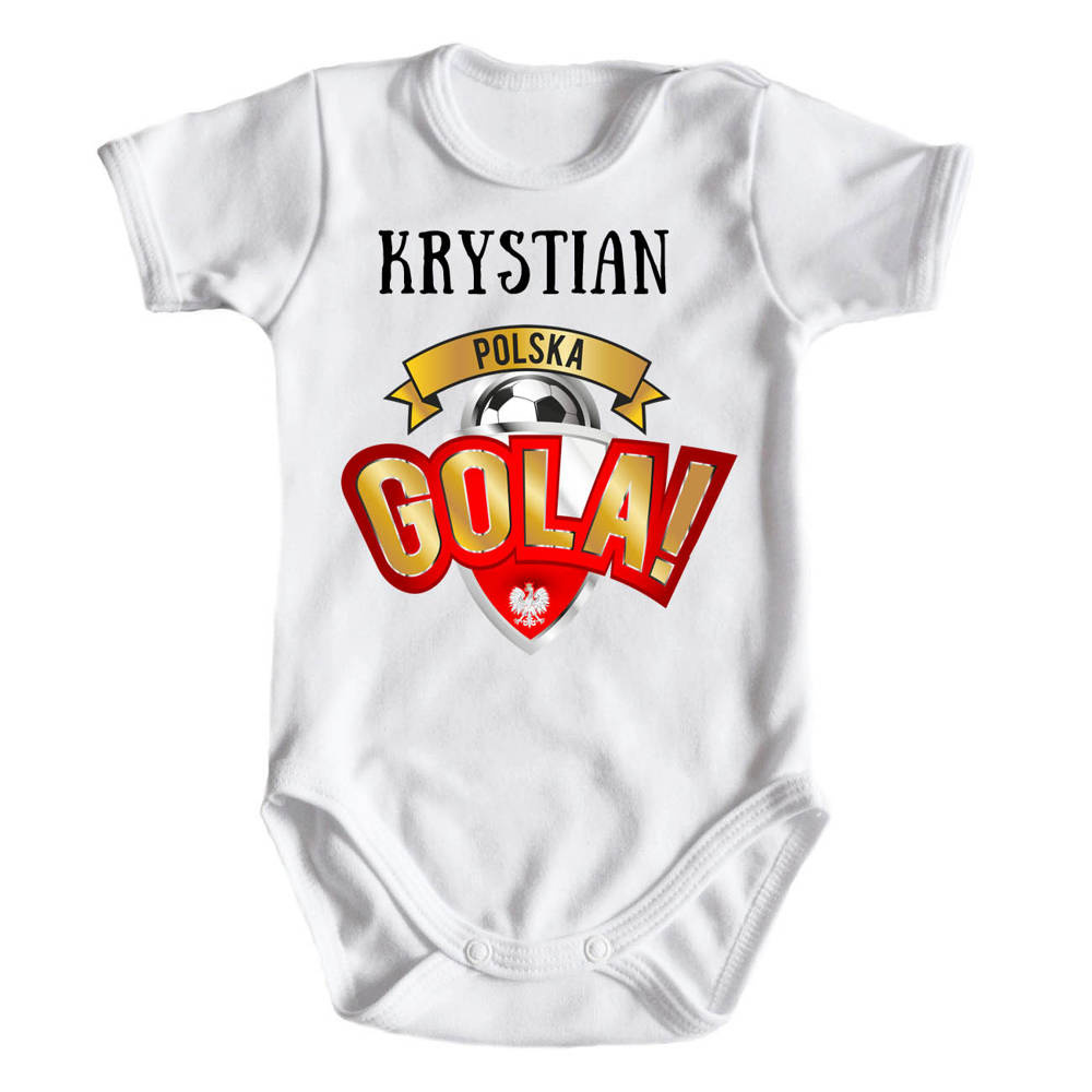 "POLSKA GOLA z imieniem dziecka" Body krótki rękaw Moocha biały