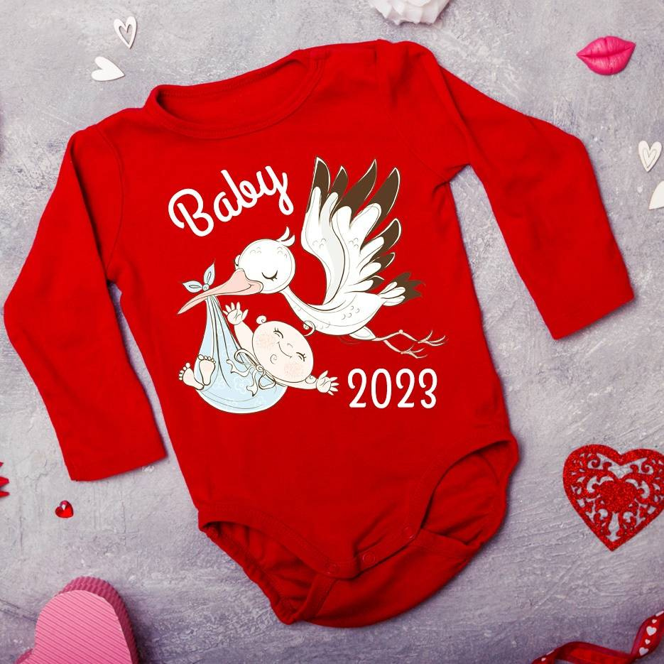 "BABY 2023 born in" Body długi rękaw Moocha czerwony
