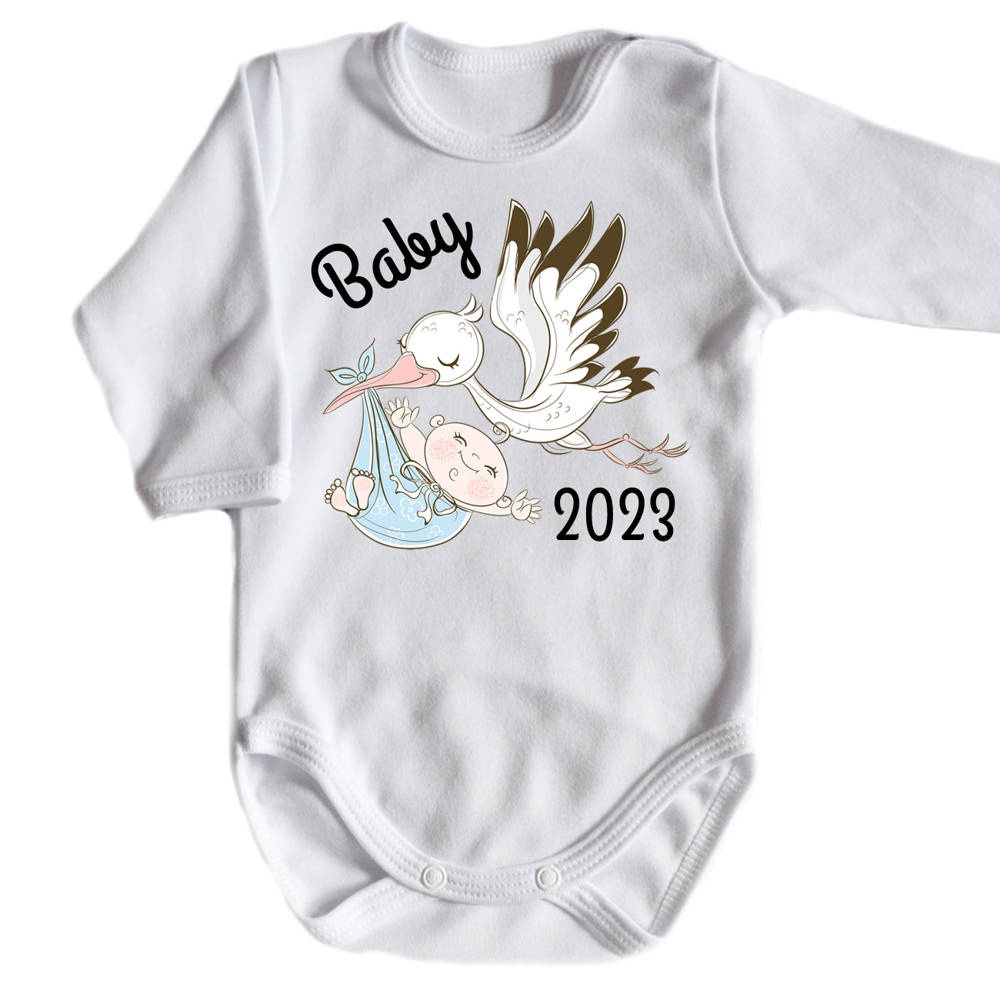 "BABY 2023 born in" Body długi rękaw Moocha biały