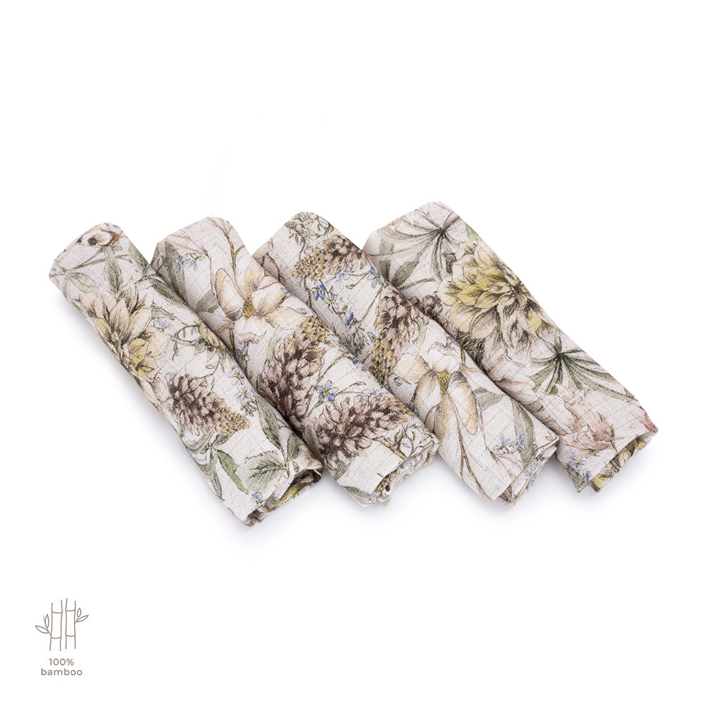 Zestaw czterech chusteczek 100% Bamboo Muślin