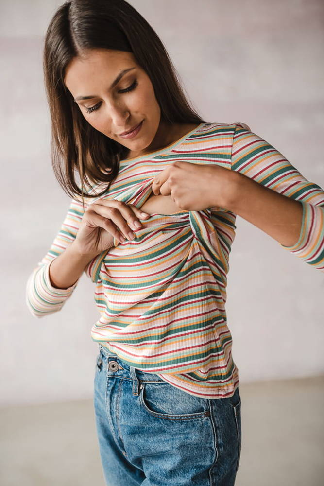 Milk Shirt Bluzka do karmienia i ciążowa Milk&Love w prążek zielony
