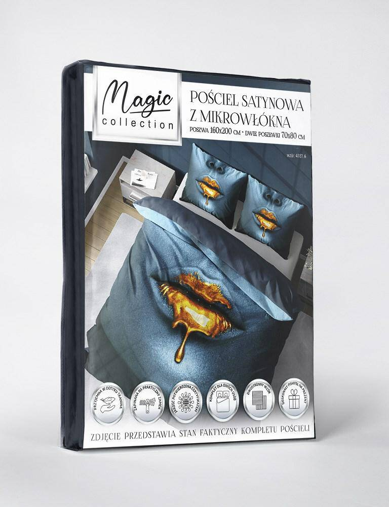 Pościel jest miękka, miła i wyjątkowo delikatna w dotyku. Tkanina stosowana do produkcji kompletów pościeli wykonana jest z wysokiej jakości przędz, co w połączeniu z nowoczesnym wzornictwem i odpowiednio nasyconą kolorystyką, daje produkt o bardzo wysokiej jakości. Kolory są wyraziste i zachowują swoją pierwotną barwę nawet po wielu praniach. Interesujące nadruki idealnie wkomponują się w każde wnętrze. Miękki materiał gwarantuje odprężenie i wypoczynek w trakcie snu. Uszyta została z mikrowłókna czyli materiału wykonanego ze 100% poliestru.