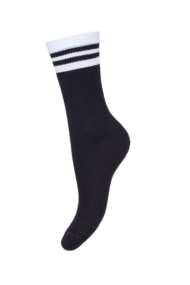 1313-001 Prążek z paskami Skarpety damskie Milena czarny-biały 01