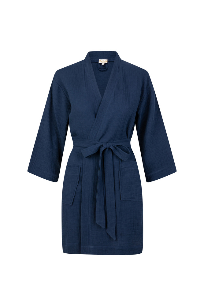 Mila Szlafrok damski muślinowy ByShelly - granatowy