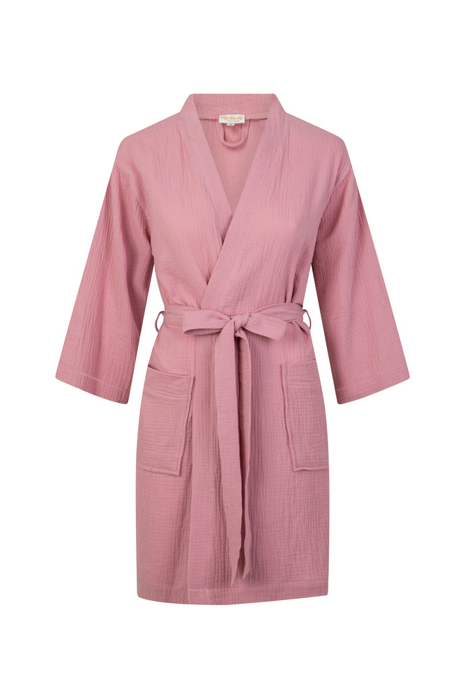 Mila Szlafrok damski muślinowy ByShelly - brudny róż