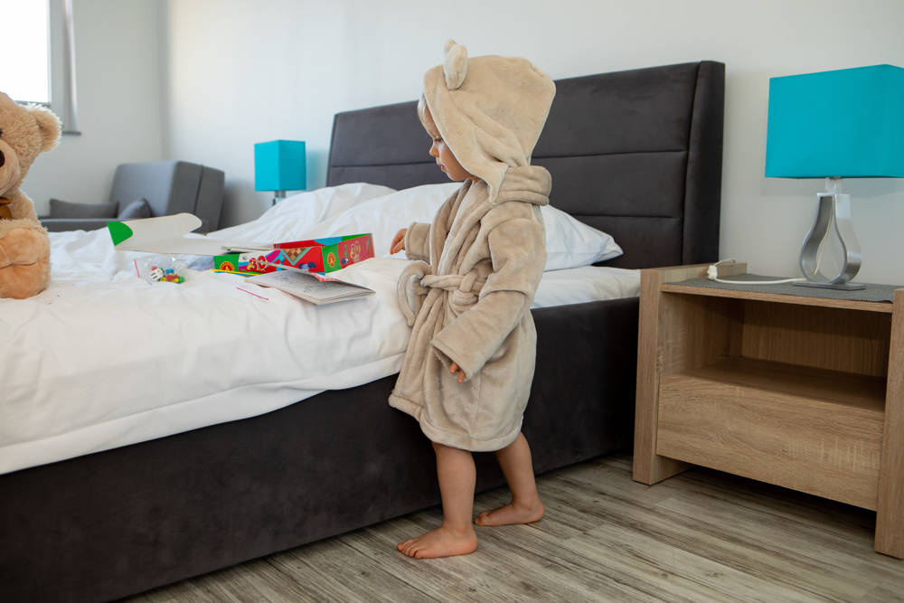 Szlafrok polarowy, który zapewni dziecku komfort oraz ciepło. Jest bardzo miękki w dotyku i doskonały w użytkowaniu. Dzianina jest mięsista i bardzo przyjemna. Na kapturze szlafrok posiada urocze uszka. Szlafrok idealnie sprawdzi się, jako prezent.