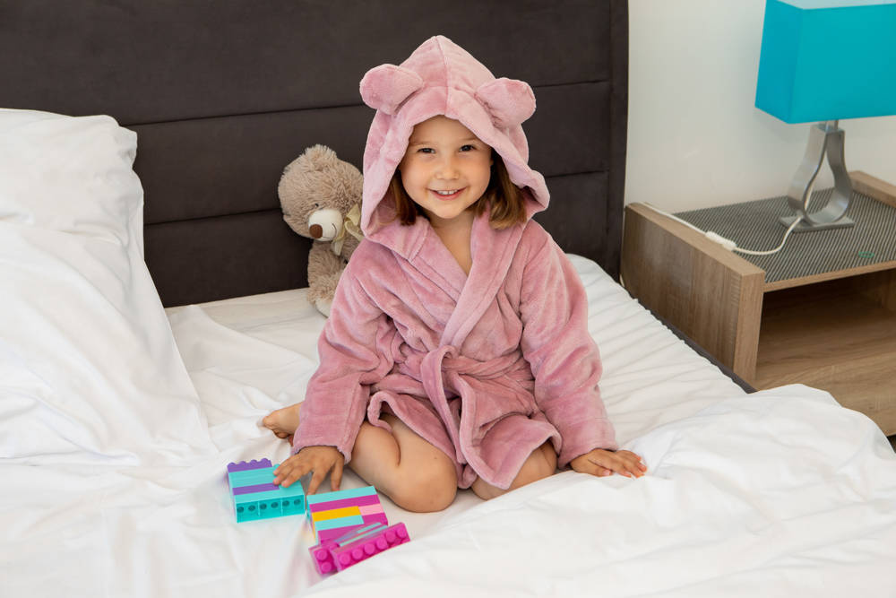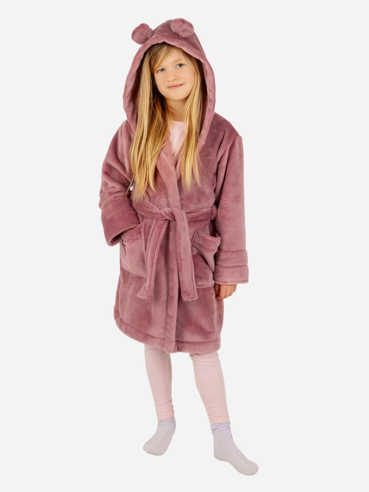 Teddy Szlafrok dziecięcy z uszkami ByShelly - brudny róż