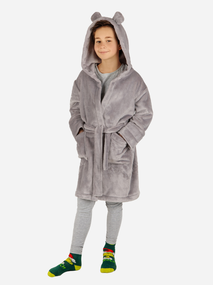 Teddy Szlafrok dziecięcy z uszkami ByShelly - jasny szary