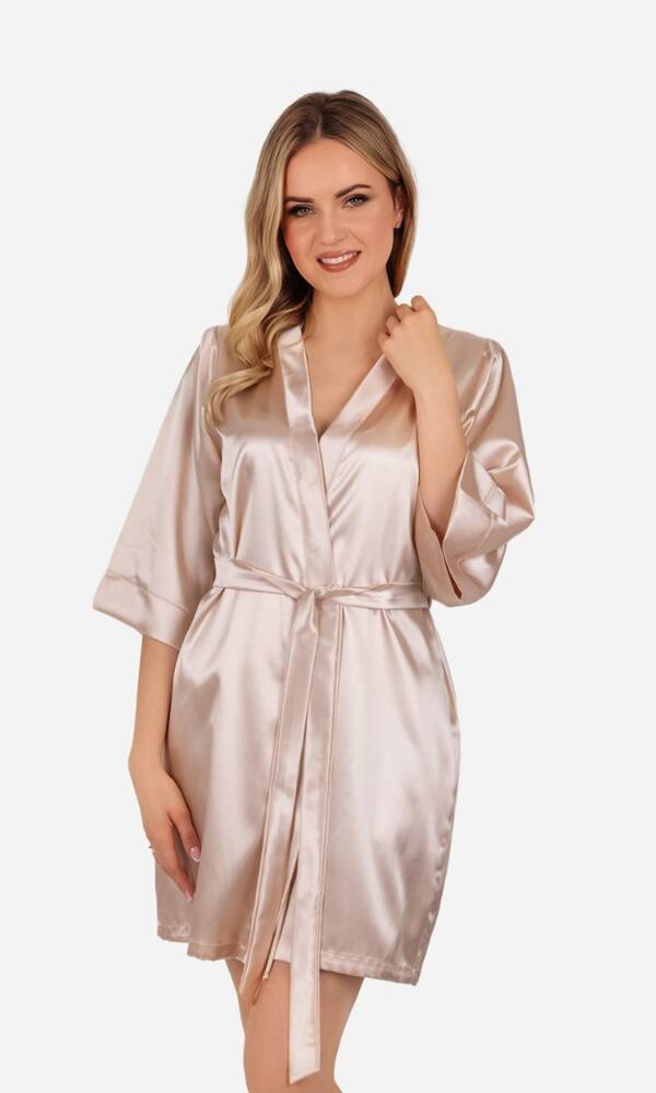 Vesna Szlafrok damski satynowy ByShelly - beżowy