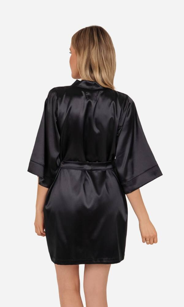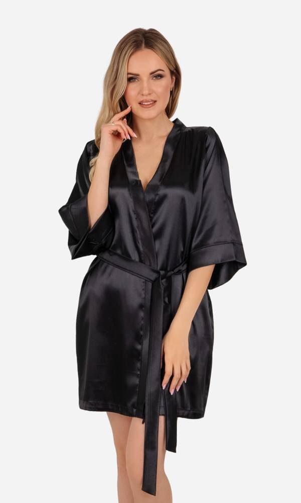 Vesna Szlafrok damski satynowy ByShelly - czarny