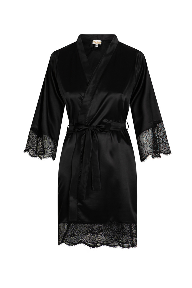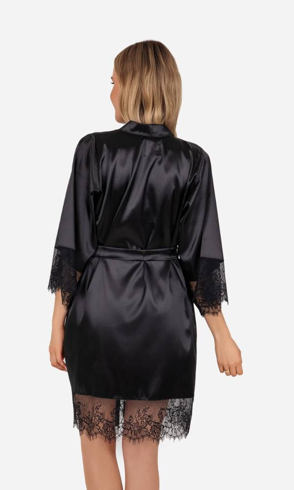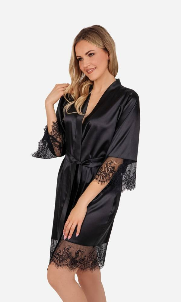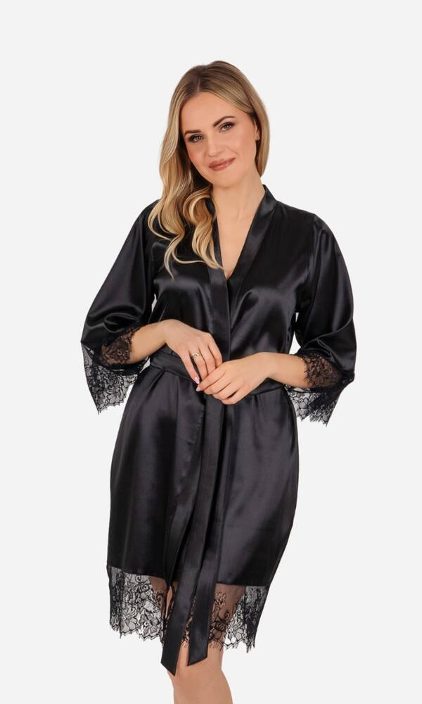 Gloria Szlafrok damski z koronką ByShelly - czarny