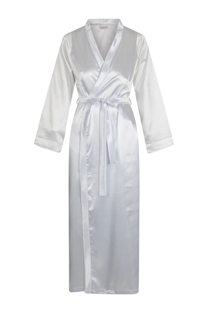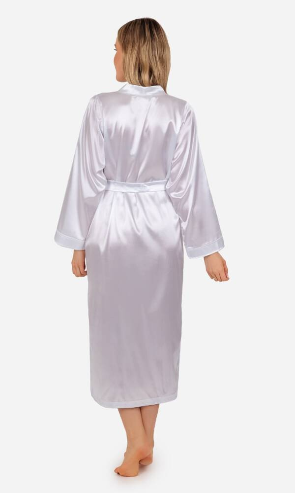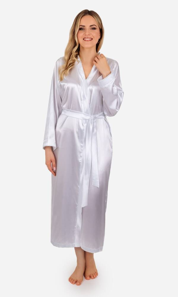 Eunika Szlafrok damski satynowy długi ByShelly - biały