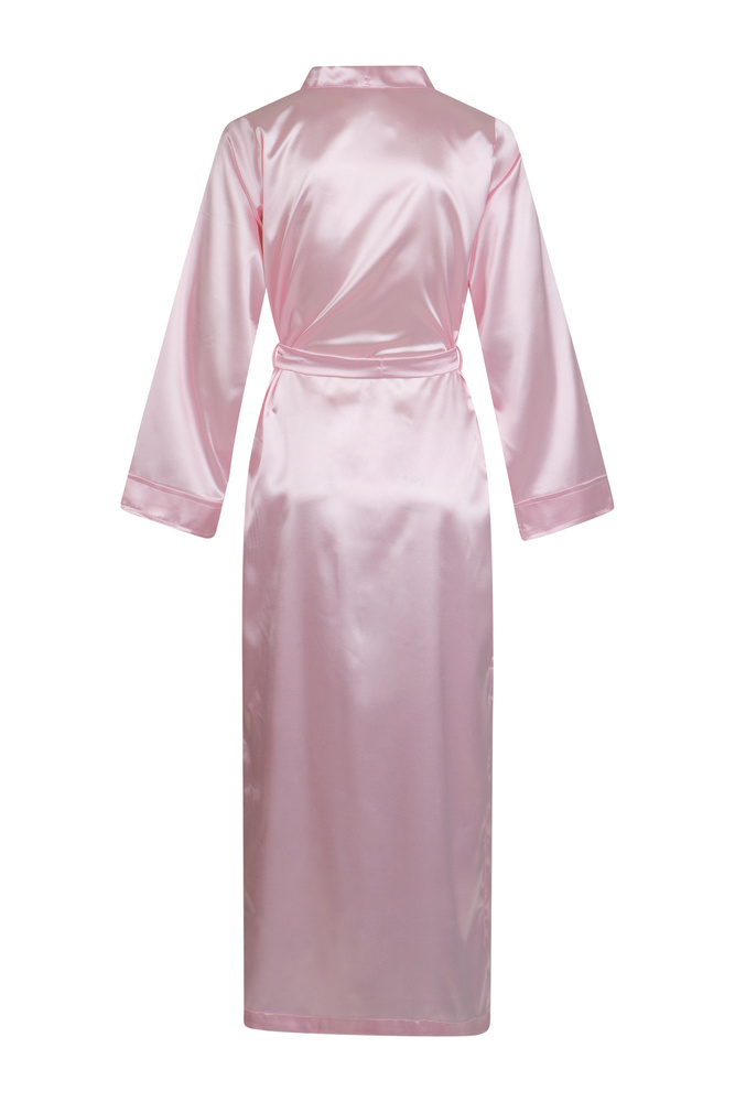 Eunika Szlafrok damski satynowy długi ByShelly - jasny róż