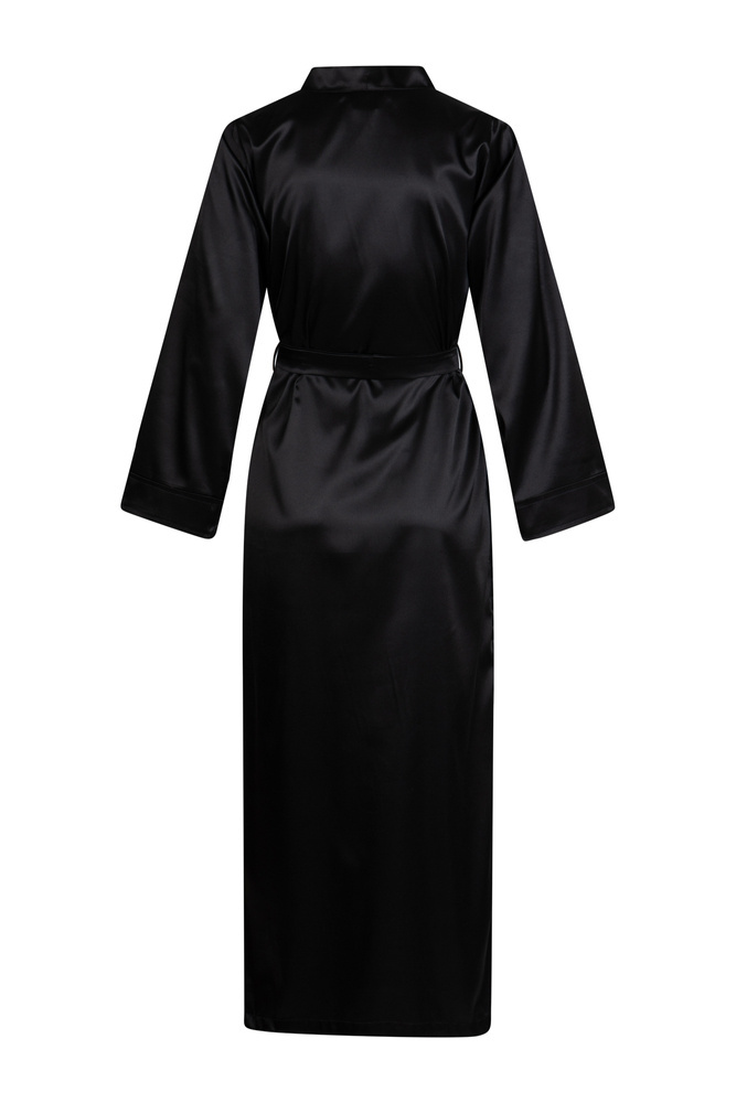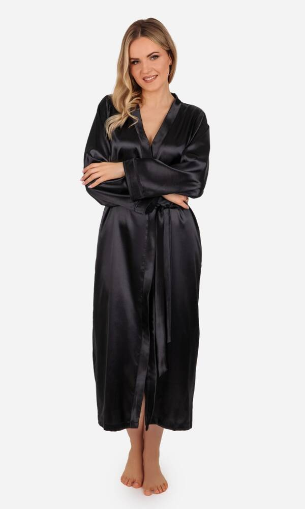 Eunika Szlafrok damski satynowy długi ByShelly - czarny