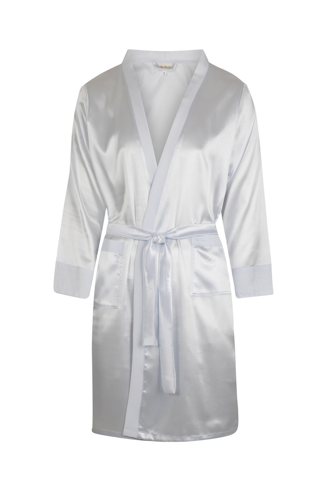 Szlafrok męski uszyty z delikatnej satyny. Delikatność tkaniny sprawia, że będziesz czuł się w nim komfortowo. Do szlafroka dołączony jest pasek. Model ten posiada kieszenie na wysokości bioder. Jest bardzo efektowny co sprawia, że każdy wieczór oraz poranek będzie wyjątkowy.