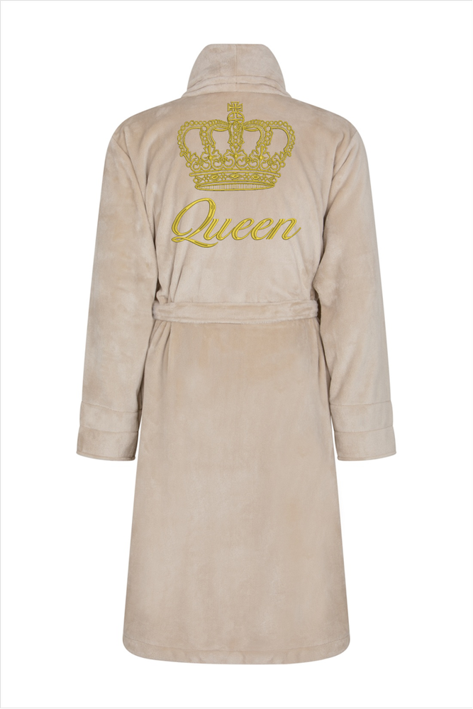 Queen + Korona Szlafrok damski polarowy ByShelly - beżowy/złoty