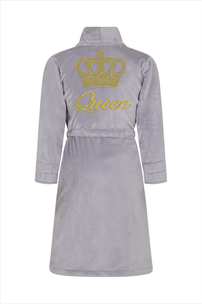 Queen + Korona Szlafrok damski polarowy ByShelly - jasny szary/złoty