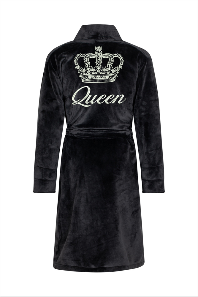 Queen + Korona Szlafrok damski polarowy ByShelly - czarny/srebrny