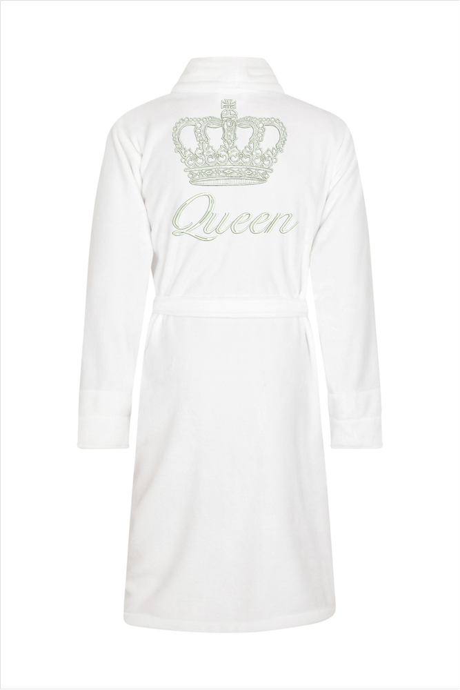 Queen + Korona Szlafrok damski polarowy ByShelly - biały/srebrny