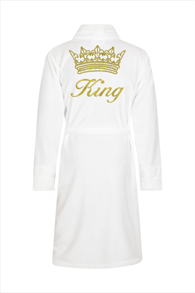 King + Korona Szlafrok męski polarowy ByShelly - biały/złoty