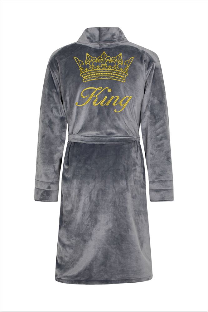 King + Korona Szlafrok męski polarowy ByShelly - grafitowy/złoty