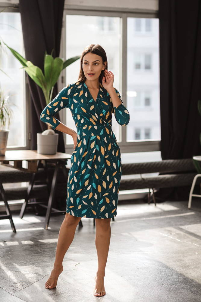 - Kopertowy dekolt, którego głębokość możesz regulować - ułatwi dyskretnie karmienie piersią