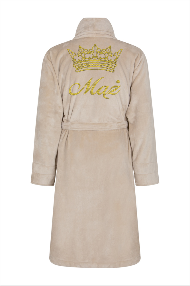 Mąż + Korona Szlafrok męski polarowy ByShelly - beżowy/złoty