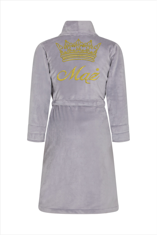 Mąż + Korona Szlafrok męski polarowy ByShelly - jasny szary/złoty