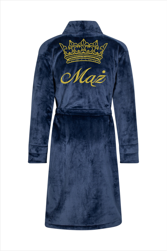 Mąż + Korona Szlafrok męski polarowy ByShelly - granatowy/złoty