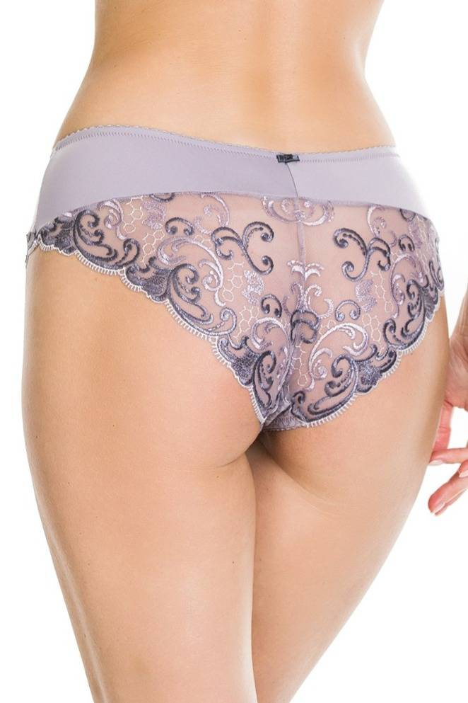 Figi pełne, przód ozdobiony haftem, boczki z mikrofibry, tył cały z koronki. Do kompletu polecamy biustonosz.