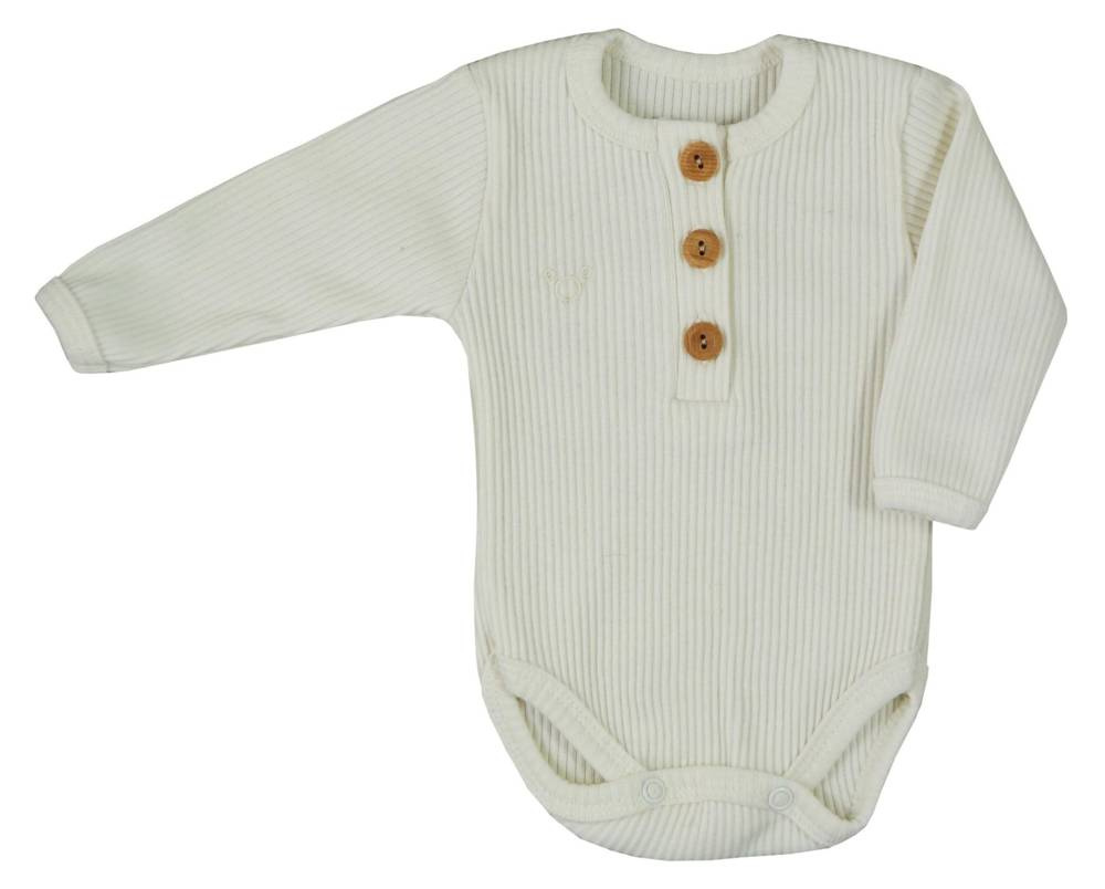 Gładkie body z długim rękawem. Wykonane z bawełny prążkowanej.