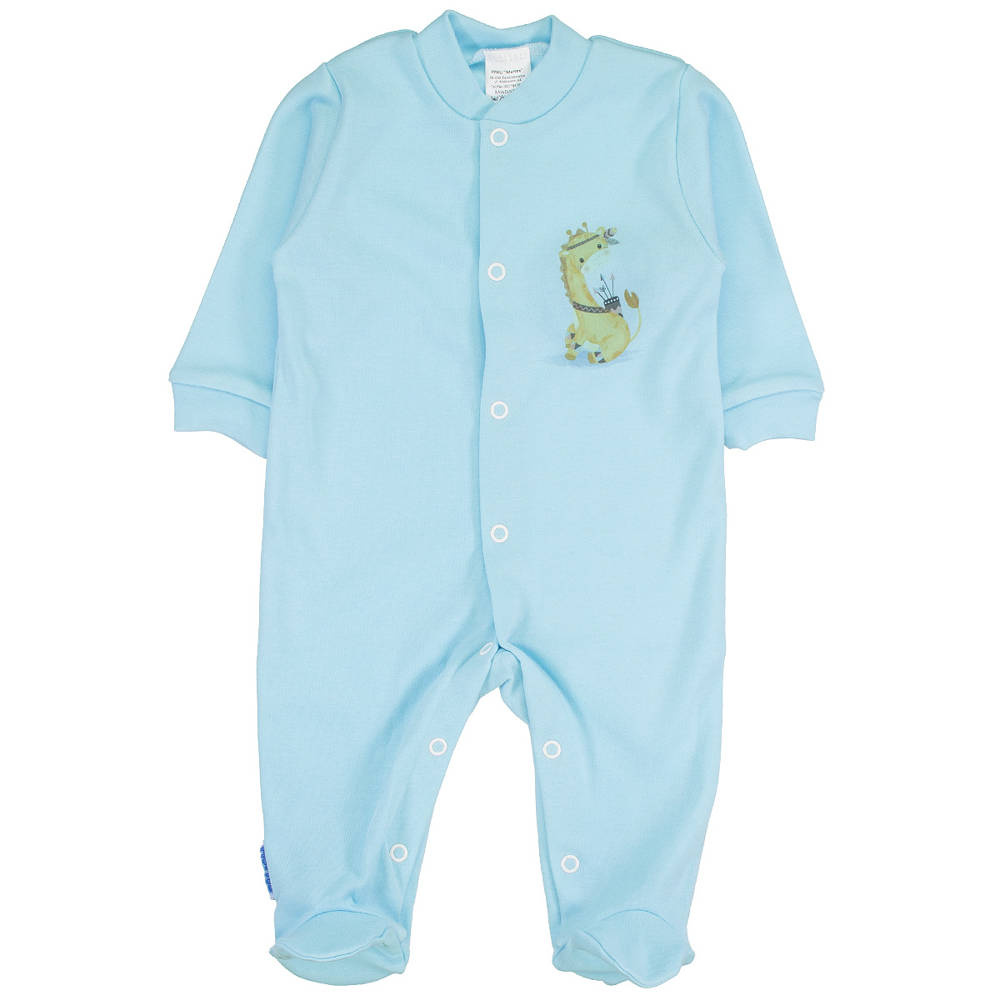Kolorowy pajacyk z 100% bawełny. Rozpinany, zapinany na napki co ułatwia ubieranie dziecka. Rękawki zakończone mankiecikiem. Zdobiony nadrukiem.