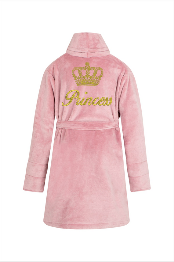 Princess + korona Szlafrok dziecięcy polarowy ByShelly - brudny róż/złoty