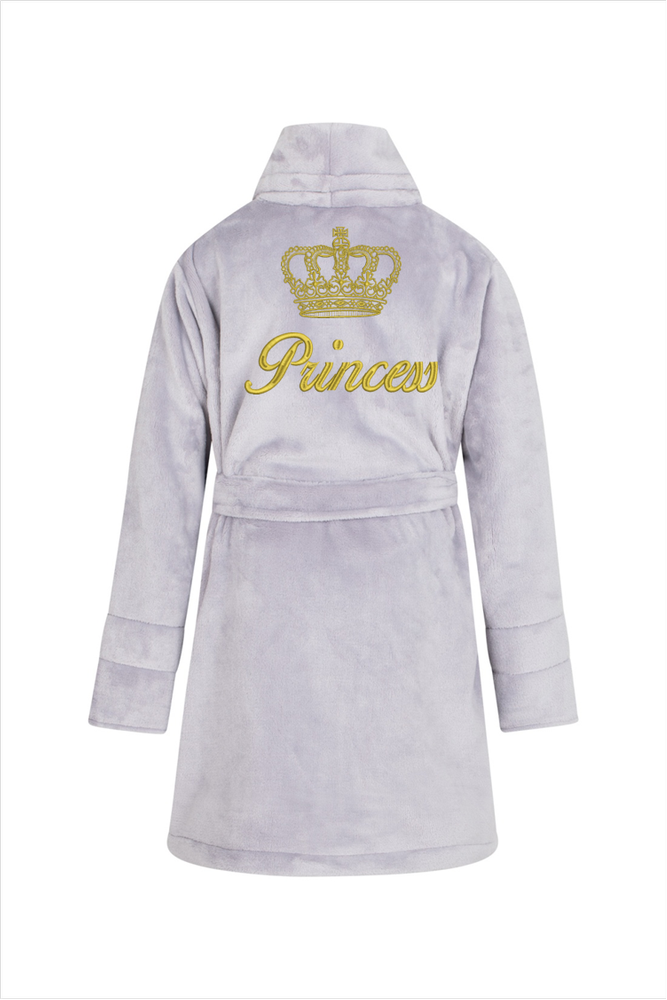 Princess + korona Szlafrok dziecięcy polarowy ByShelly - szary/złoty