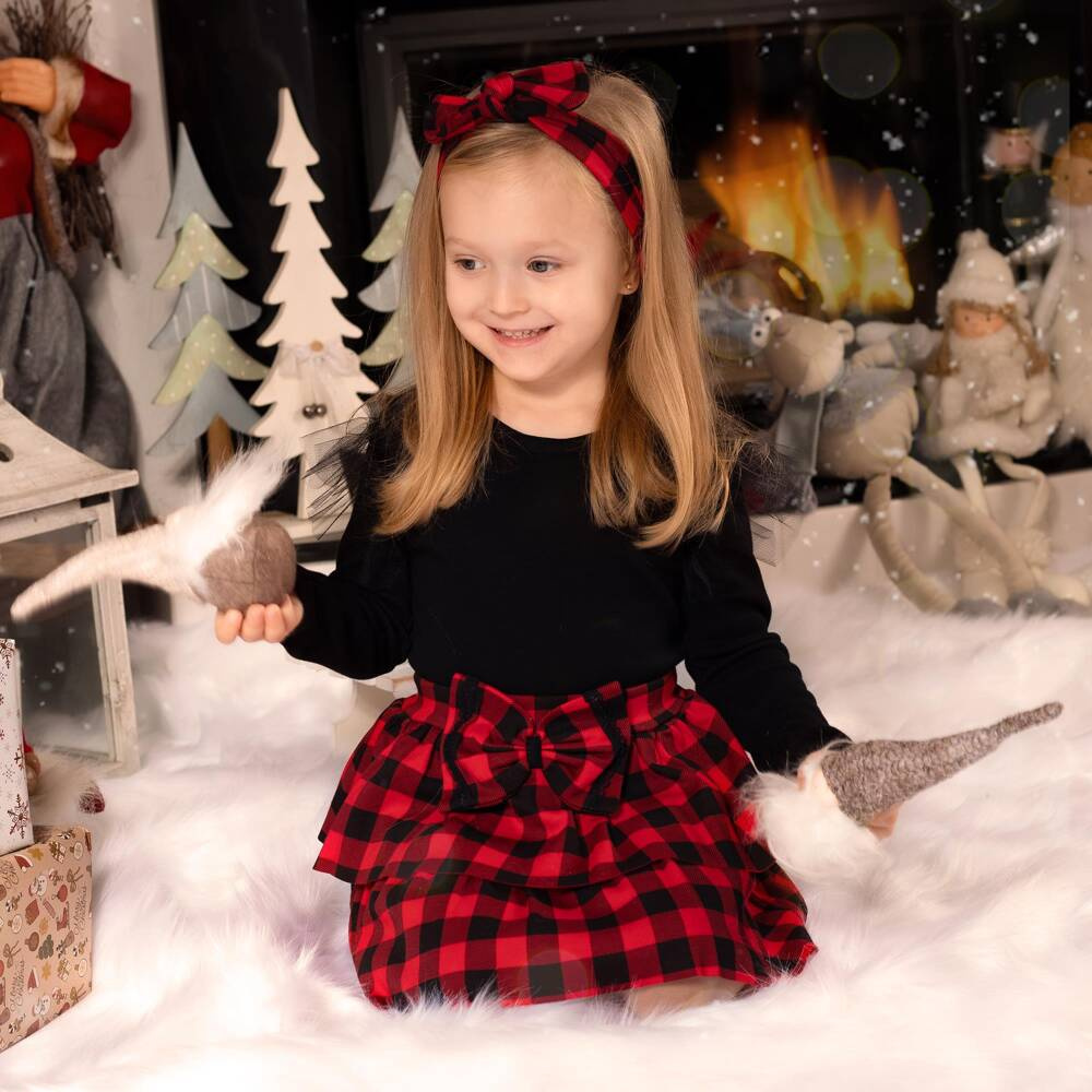 163578 Spódniczka bawełniana "Magia Świąt" Nicol - kratka: czarny, czerwony