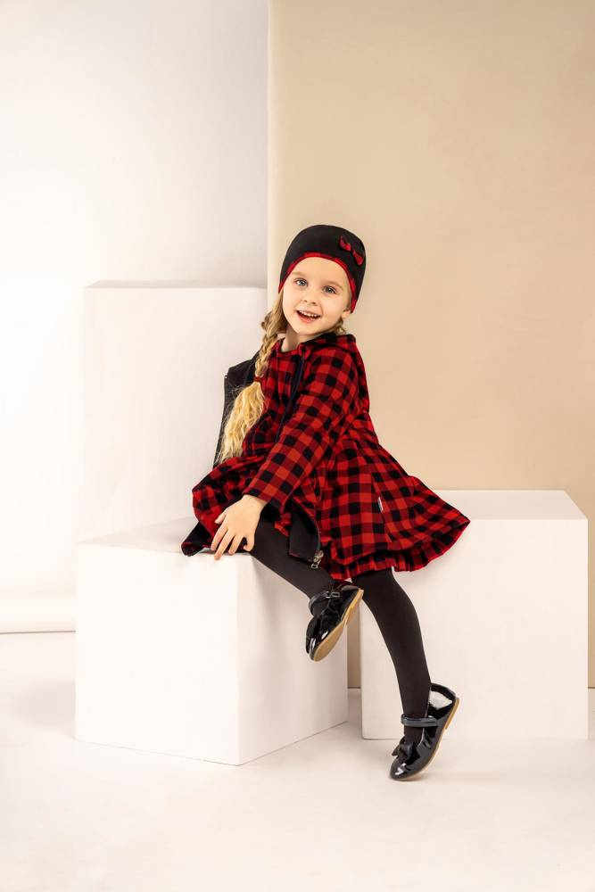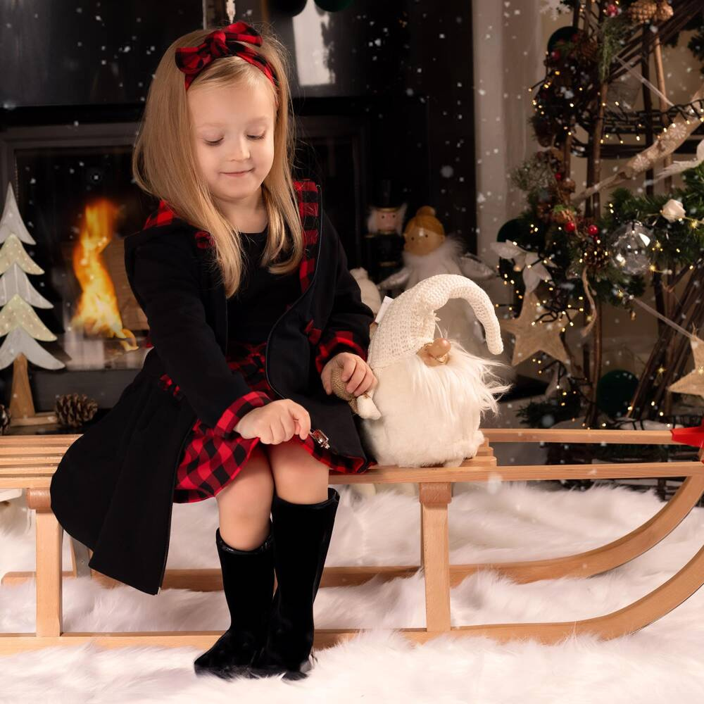 Płaszczyk dwustronny z kolekcji "Magia Świąt" z jednej strony w kolorze czarnym, z drugiej w kratkę. Wykonana z miękkiej i przyjemnej w dotyku tkaniny. Krój umożliwia całkowite rozpięcie. Model zapinany na zamek. Wyprodukowana w Polsce.