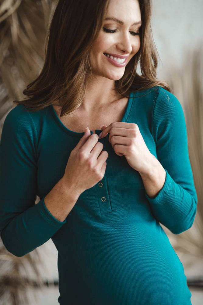 Wygodna sukienka ciążowa uszyta z wysokiej jakości dzianiny, która się nie odkształca! Ma dopasowany krój, a dzięki napom przy dekolcie swobodnie nakarmisz w niej maluszka. Można ją nosić także po ciąży, jako zwykłą sukienkę typu bodycon! Idealna na co dzień i na specjalne okazje Została uszyta z miękkiej dzianiny, która przeszła rygorystyczne testy Oeko-Tex Standard 100. Bawełniana dzianina zachowuje gładkość i głęboki kolor nawet po wielu praniach. Uszyta w Polsce!