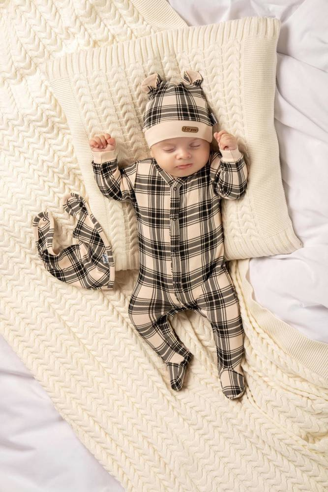 163626 Czapeczka niemowlęca "Magia Świąt" Nicol - kratka: czarny, beżowy