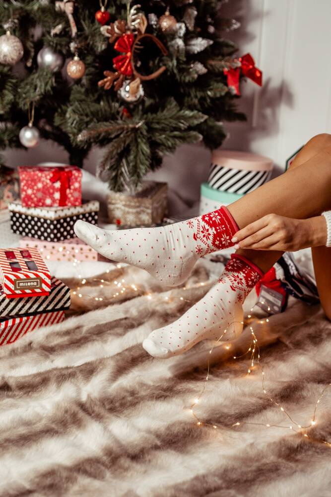 Opinie o 0071-002 Gwiazdki Unique Skarpety damskie Świąteczne Milena -ecru