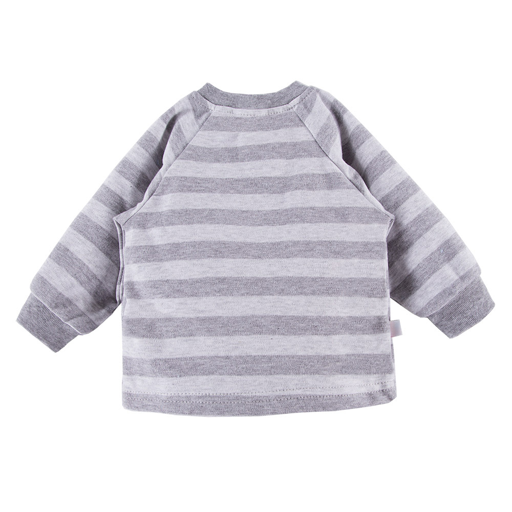 2-pak bluzeczek dziecięcych rozpinanych. Bluzeczka może być wykorzystywana jako kaftanik do spodenek lub koszulka niemowlęca do półśpiochów. Bluzeczka w paski z napisami świetnie sprawdzi się jako cienka bluza ubrana na body lub śpioszki dziecięce.