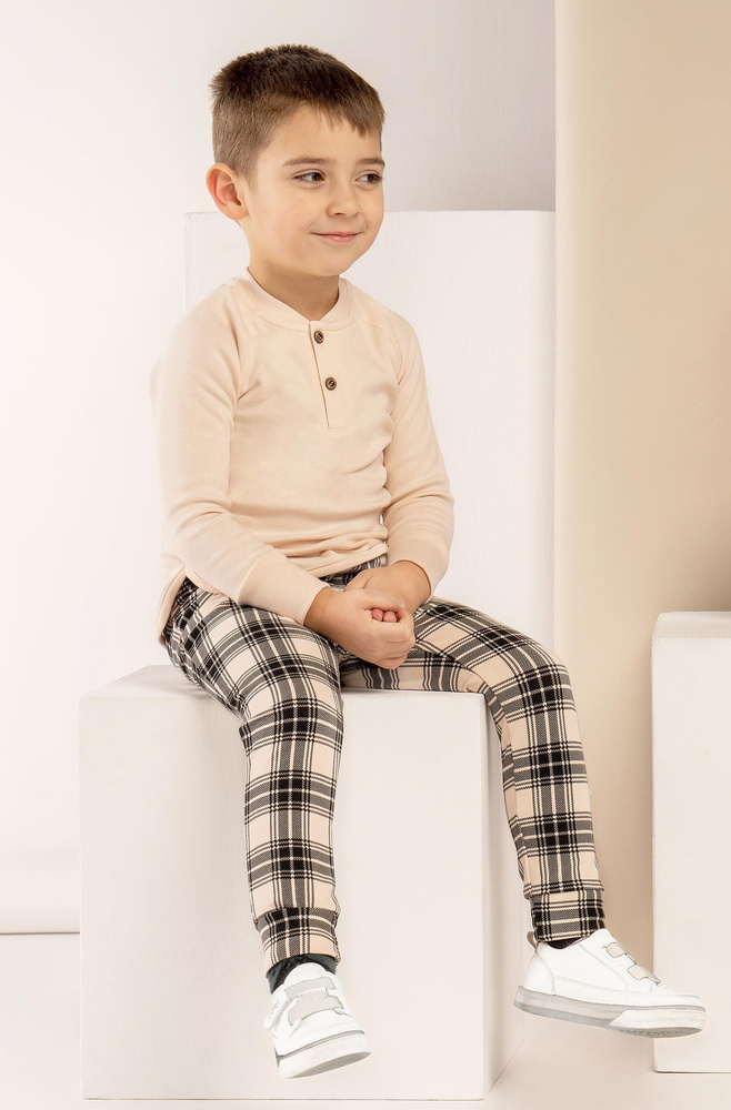 Zapytaj o produktModne spodnie dla chłopca wykonane z bawełny dresowej, która jest całkowicie bezpieczna dla skóry dziecka. Spodnie posiadają ściągacz w pasie oraz przy nogawkach.