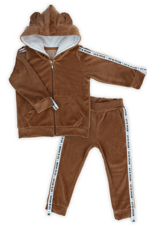 169312 Komplet welurowy dresowy 2-częściowy "Mix" Nicol - brązowy
