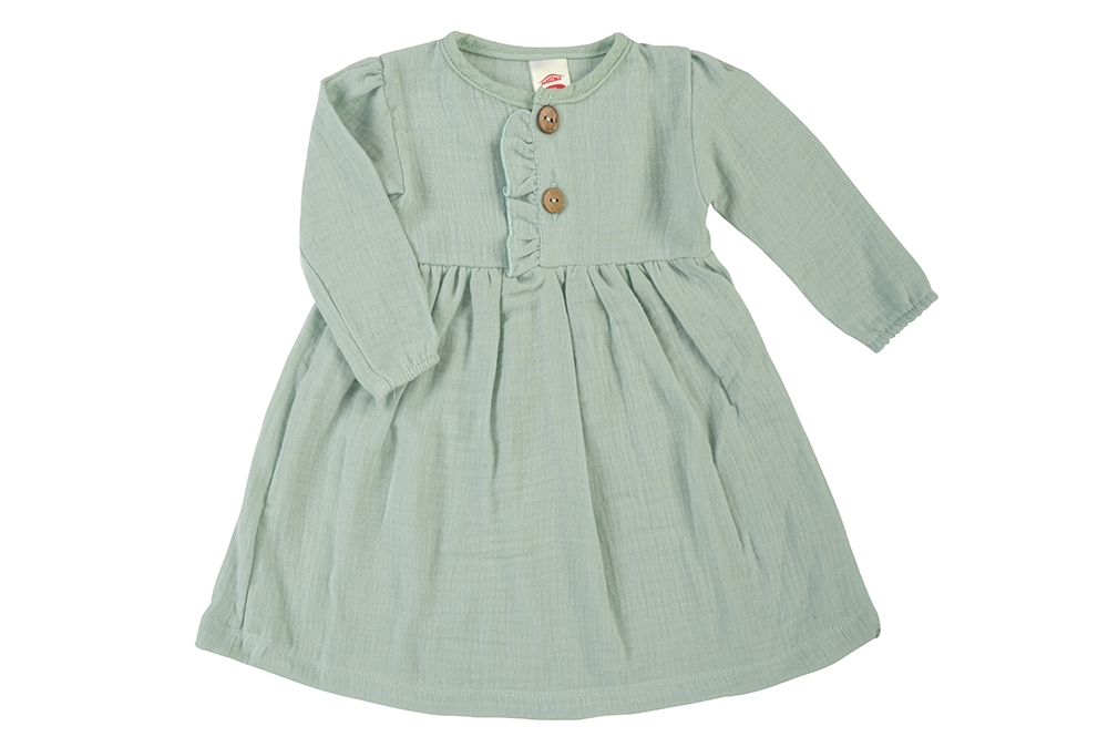 Sukienka uszyta z miękkiej i przyjemnej w dotyku bawełny muślinowej.